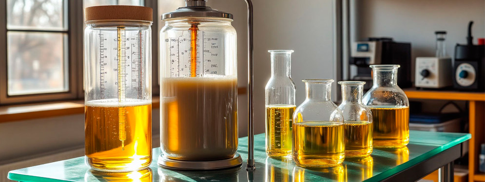Перед проведением испытания осуществляется нагрев тестируемого объема до +45 градусов и поддержание заданной температуры в течение получаса. Операция позволяет подготовить жидкость к анализу, сделав её однородной по кристаллическому строению.